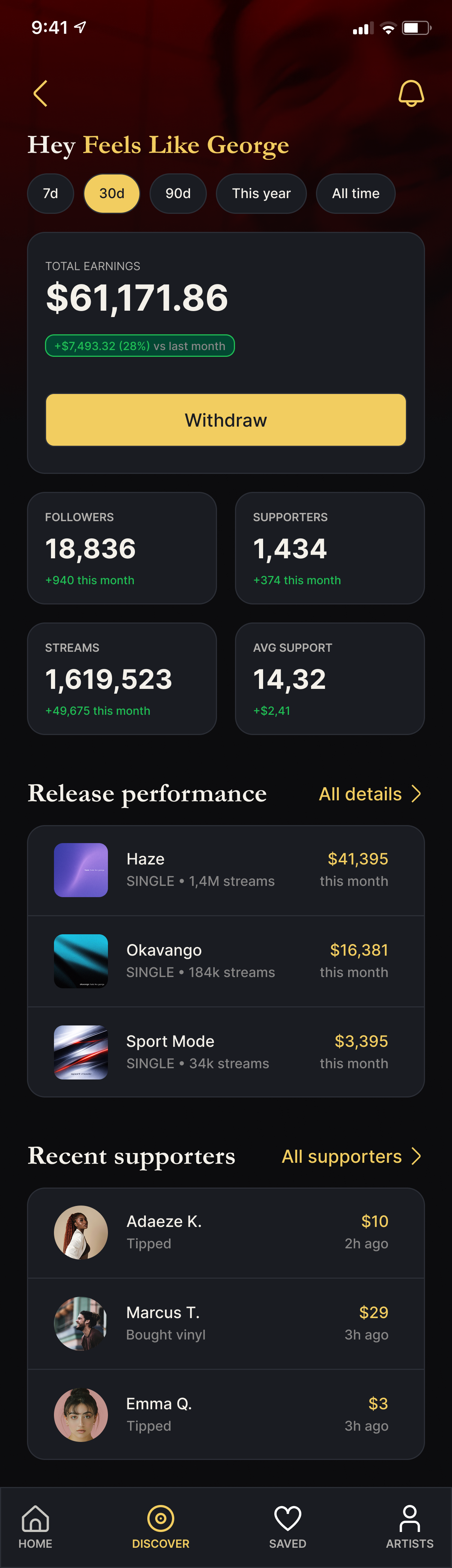 Artists should feel in control. Uploading, managing releases and understanding earnings should feel simple, transparent and encouraging.