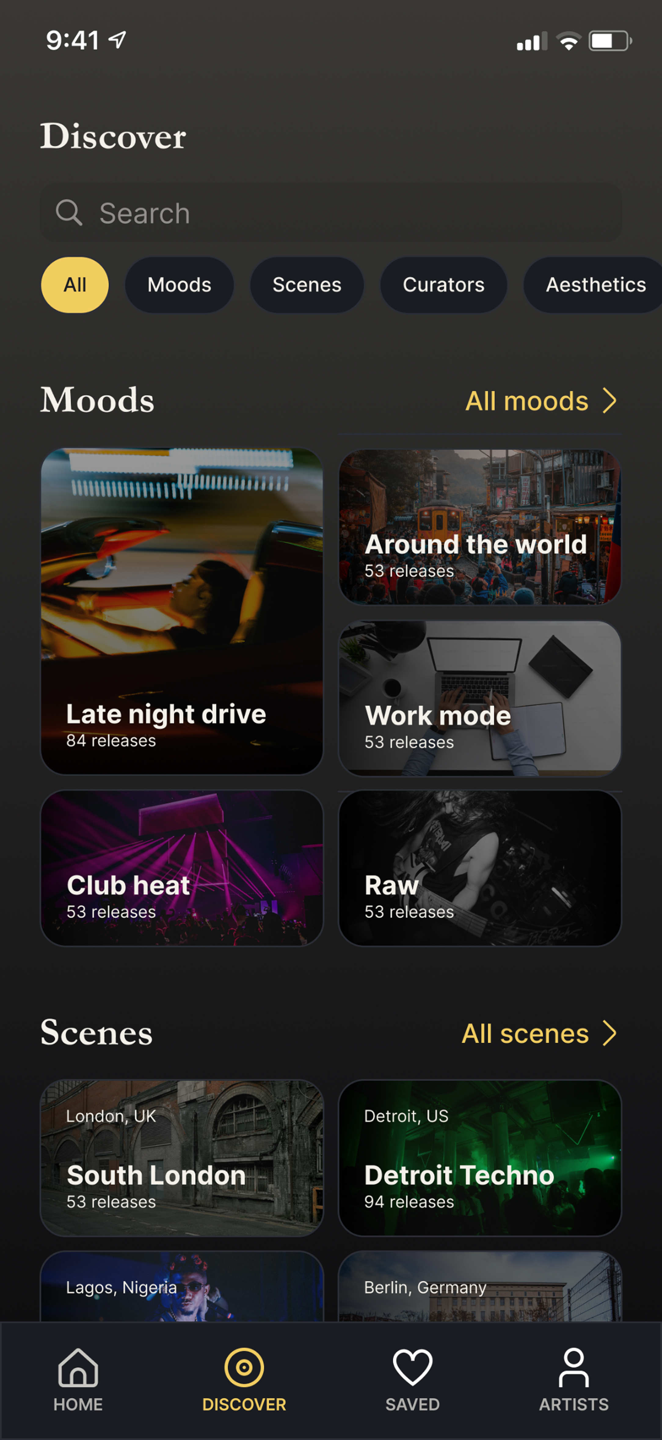 Visuals should lead discovery. Artwork, scenes and atmosphere should pull users into music before metadata does.